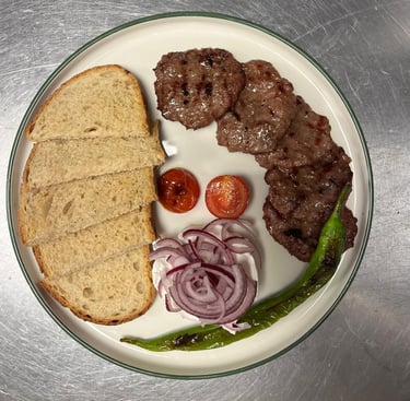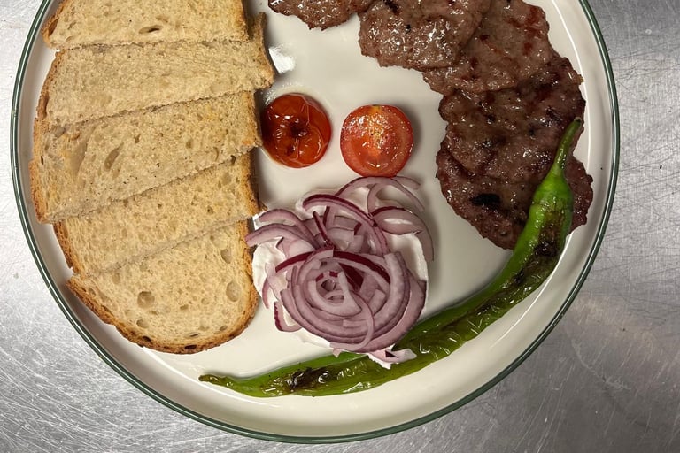 (200 gr ızgara köfte, ekşimaya ekmeği eşliğinde, yoğurt, biber ve domates)